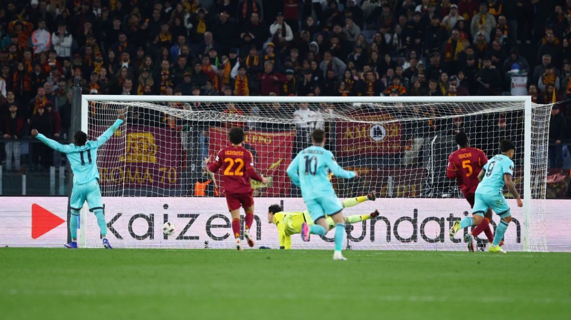 ROMA (ITALPRESS) – Sette gol, spettacolo e bel calcio. Alla fine a far festa è il Bologna che espugna l’Olimpico e conquista i quarti di finale di Europa League, competizione che la Roma saluta a testa alta e con qualche rimpianto. I rossoblù, dopo l’1-1 del Dall’Ara, piegano i giallorossi ai supplementari per 4-3 nel derby di coppa al termine di un match dalle infinite emozioni. Ospiti avanti con Rowe (22′) e subito riacciuffati da N’Dicka (32′). Nel finale di frazione Bernardeschi dal dischetto riporta avanti gli ospiti e Castro firma il tris al 58′. A cambiare la partita è il 17enne Vaz, subentrato al posto di uno spento El Shaarawy, che conquista il rigore del 3-2, poi trasformato da Malen (69′), e serve a Pellegrini l’assist per il gol del 3-3 all’80’. Ai supplementari a deciderla è Cambiaghi (111′), che regala al Bologna i quarti di finale e spegne i sogni europei della Roma. Bernardeschi e compagni si giocheranno un posto in semifinale con l’Aston Villa di Unai Emery, uscito vittorioso dal rispettivo ottavo con il Lille. La formazione di Gasperini saluta le coppe e ripartirà domenica alle 18.00 dalla sfida casalinga con il Lecce valida per la 30esima giornata di Serie A, l’ultima prima della sosta nazionali. Il Bologna ospiterà la Lazio domenica alle 15.00.